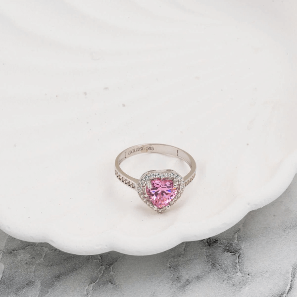 Bu ürün: Pink Heart Solitaire Gold Ring